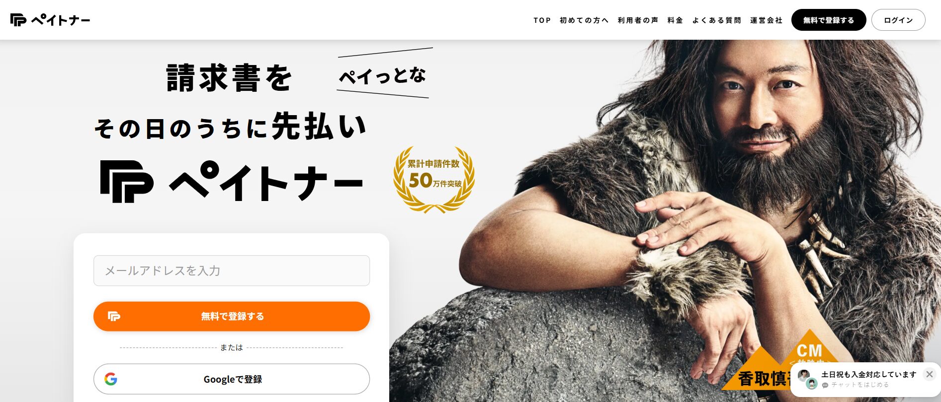 ペイトナーは、フリーランス・個人事業主向けのファクタリングサービスです。